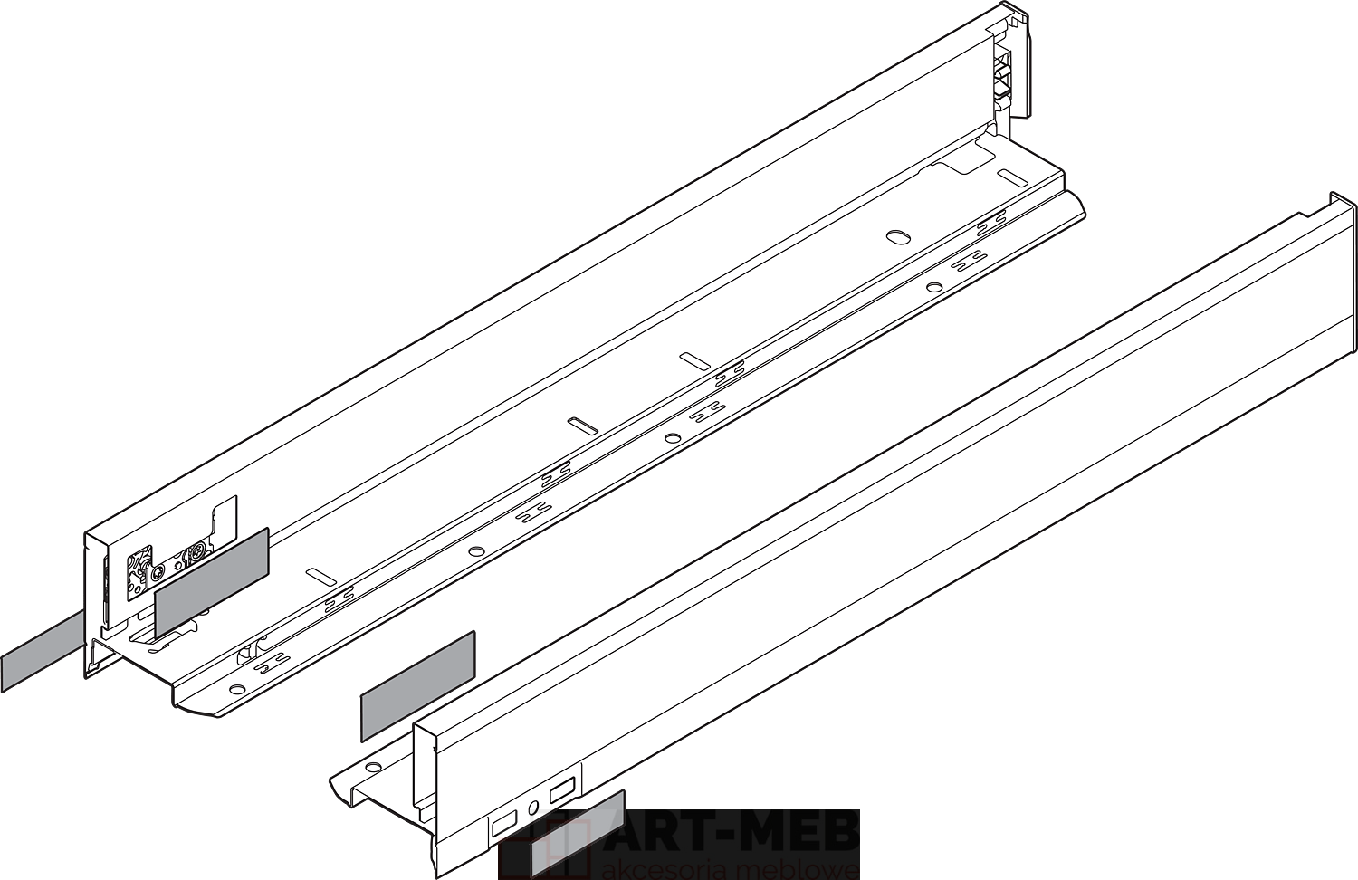 - Wyjątkowa smukłość: Proste boki (wewnątrz i zewnątrz) o grubości 12,8 mm zapewniają więcej miejsca wewnątrz szuflady w porównaniu do standardowych systemów.