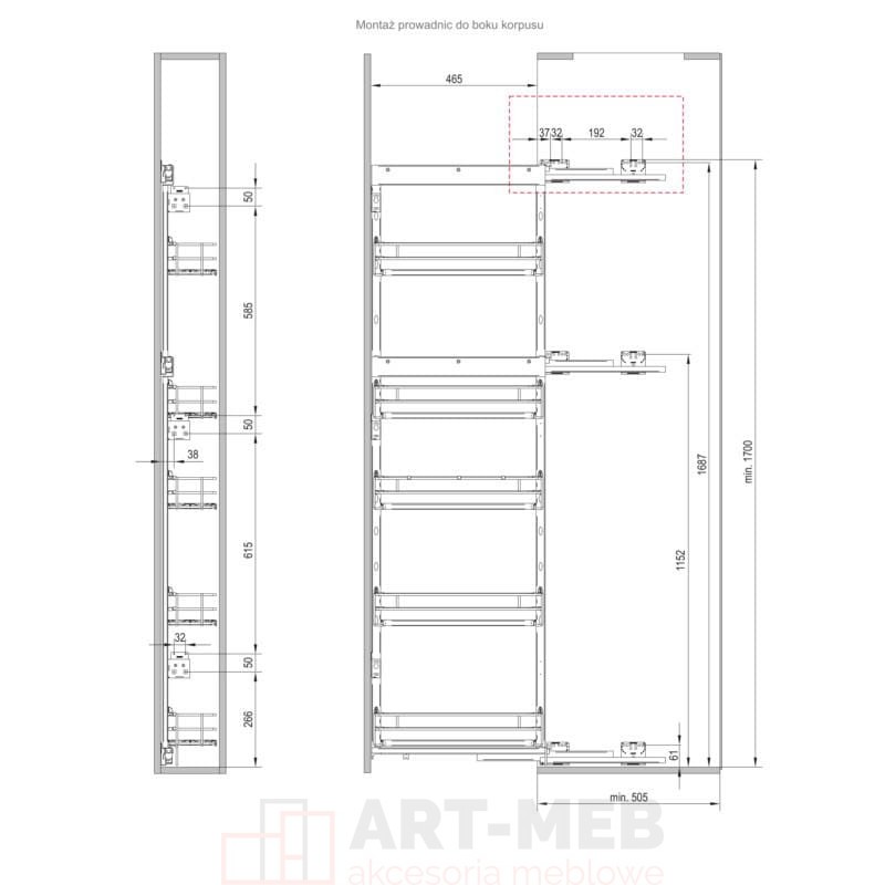 Cargo MAXI 170cm boczne 200 lewe chrom 5 poziomów