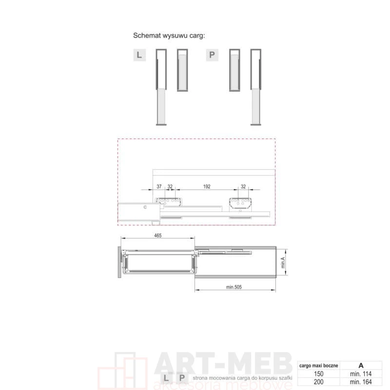 Cargo MAXI 170cm boczne 200 prawe metal lakier grafit 5 poziomów