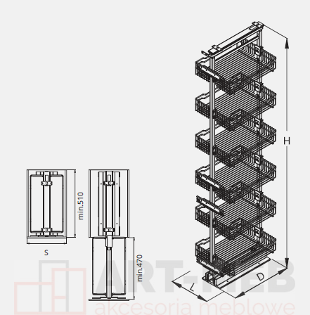 Kosz cargo maxi linia prestige 400 ilość półek 6 P22 SREBRNY