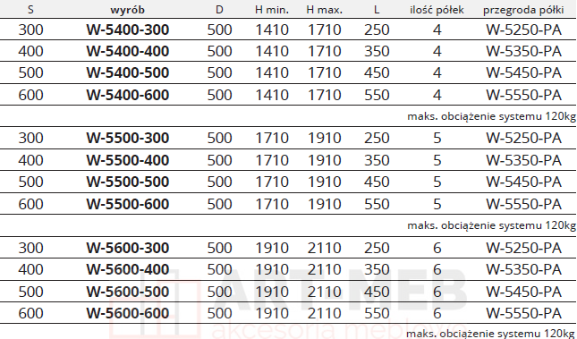 Ilość półek 6