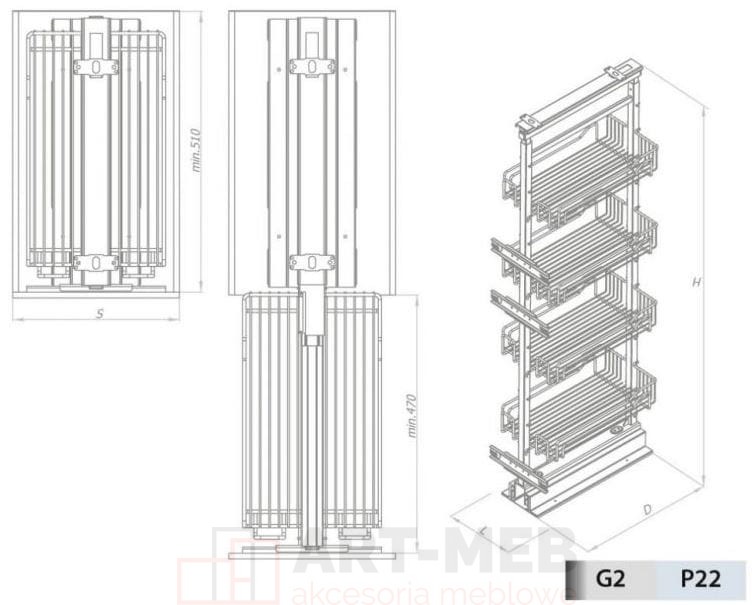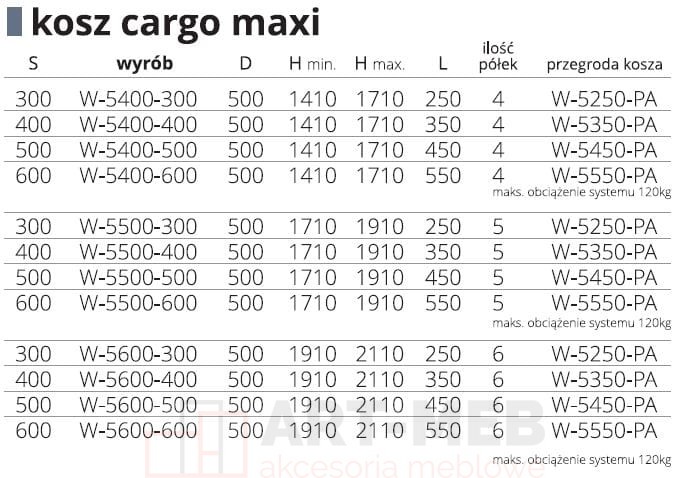 Kosz cargo maxi linia prestige 400 ilość półek 6 P68 LAKIER ANTRACYT W-5600-400