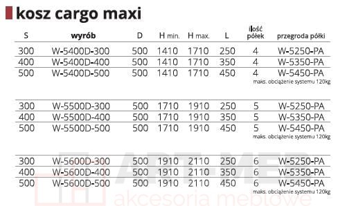 Kosz cargo maxi linia prestige supreme 400 H-1710 5-półkowe CHROM POŁYSK ANTRACYT W-5500D-400