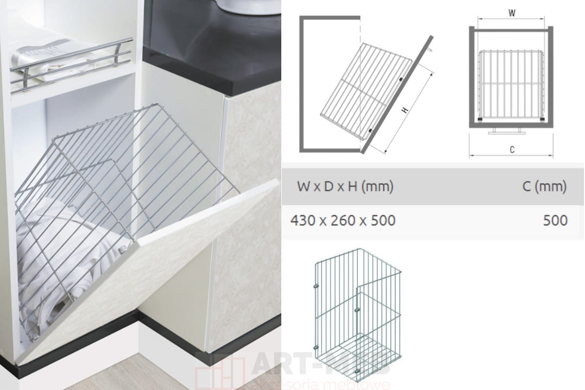Kosz na bieliznę do szafki 50cm metal chrom STARAX