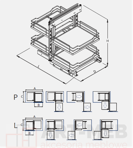 Kosz narożny NOMET MAGIC KOMFORT P/L W-6000D-1000 Srebrny