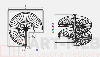 Kosz obrotowy śr. 690 3/4 z płynną regulacją słupa, hamulcem i regulacją wysokości półek P22 SREBRNY W-4169
