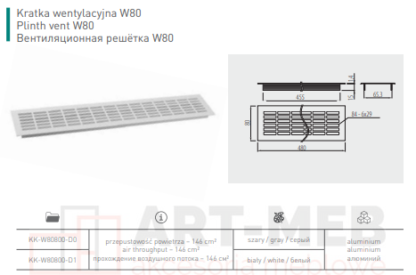 Kratka wentylacyjna duża aluminium