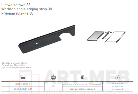 Listwa kątowa blatu 38mm L=630