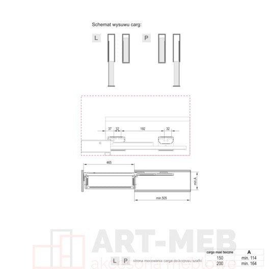 - kierunek wysuwu lewy