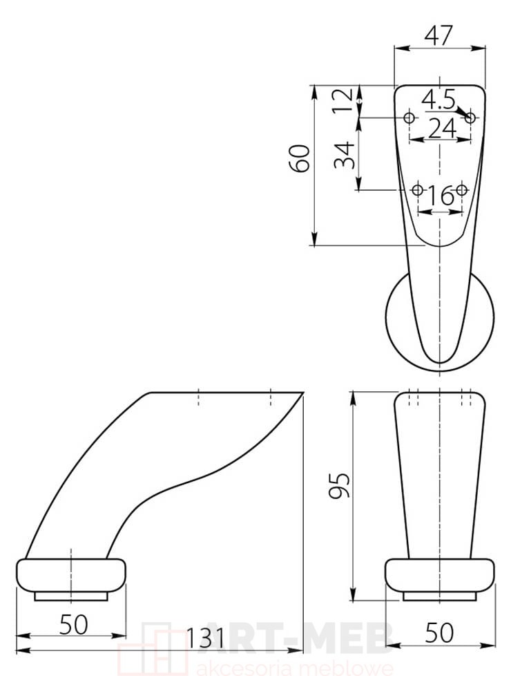 Nóżka 712 aluminium h 95