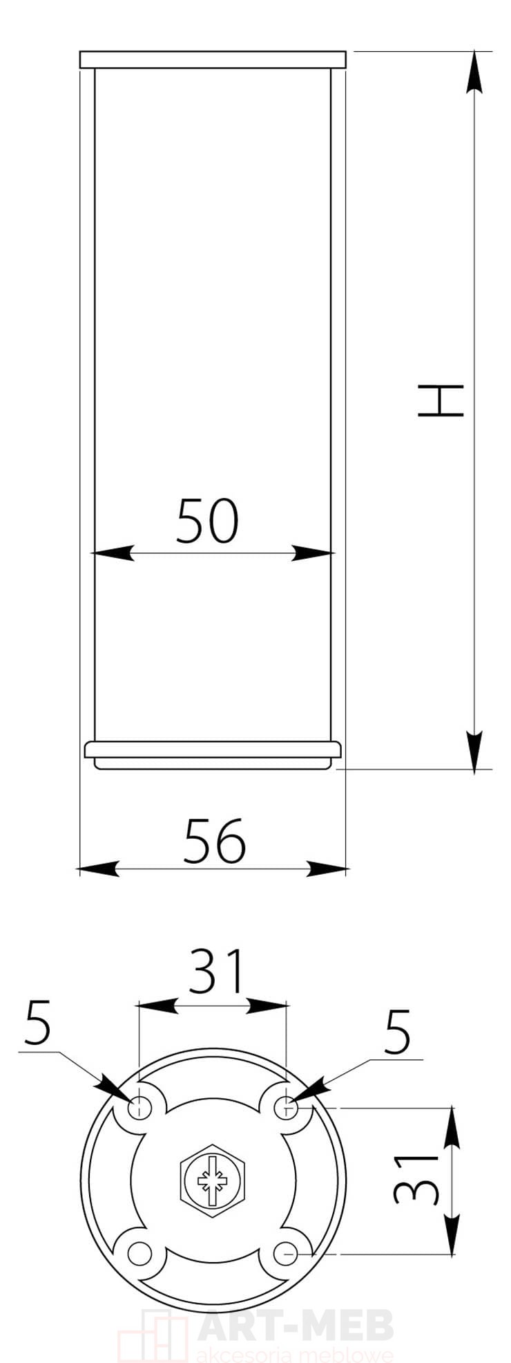 Nóżka 867 aluminium h 10 fi50
