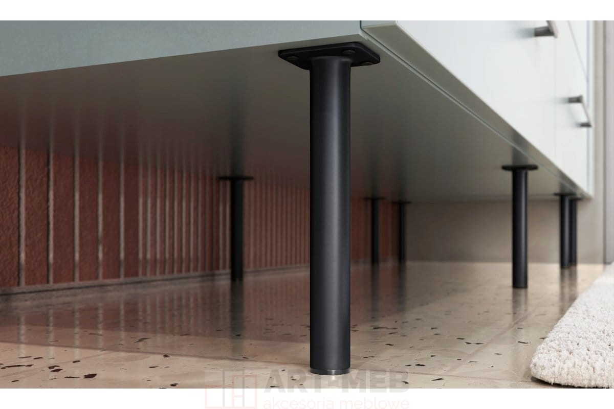Okrągła w przekroju poprzecznym nóżka meblowa RONDA SIMPLE wykonana ze stali dostępna w dwóch wariantach kolorystycznych: złoto szczotkowane i czarny mat. Średnica - 25 mm. Plastikowy ślizgacz zabezpiecza powłoki przed przypadkowym zarysowaniem. Prostokątna boczna platforma montażowa na 2 wkręty. Posiada nowoczesny, elegancki wygląd podkreślając tym samym lekkość mebli. Świetnie sprawdzi się w salonie do wyposażenia, takiego jak komody, sofy, szafki.