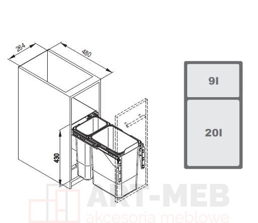 - sugerowana pojemność worków: 1 x 20l + 1 x 35l / 60l