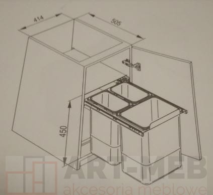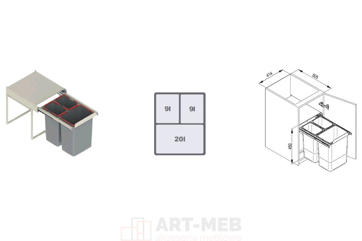 Pojemnik na odpady JC606 wysoki bez mocowania 45 potrójny 2x9l +1x20l