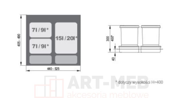 - sugerowana pojemność worków: 2 x 20l + 1x 35l / 60l