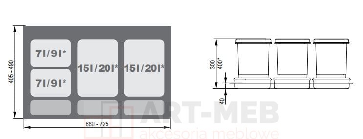- sugerowana pojemność worków: 2 x 20l + 2x 35l / 60