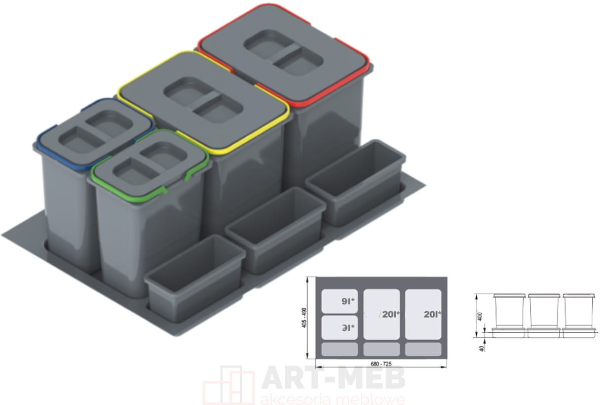 - sugerowana pojemność worków: 2 x 20l + 2x 35l / 60