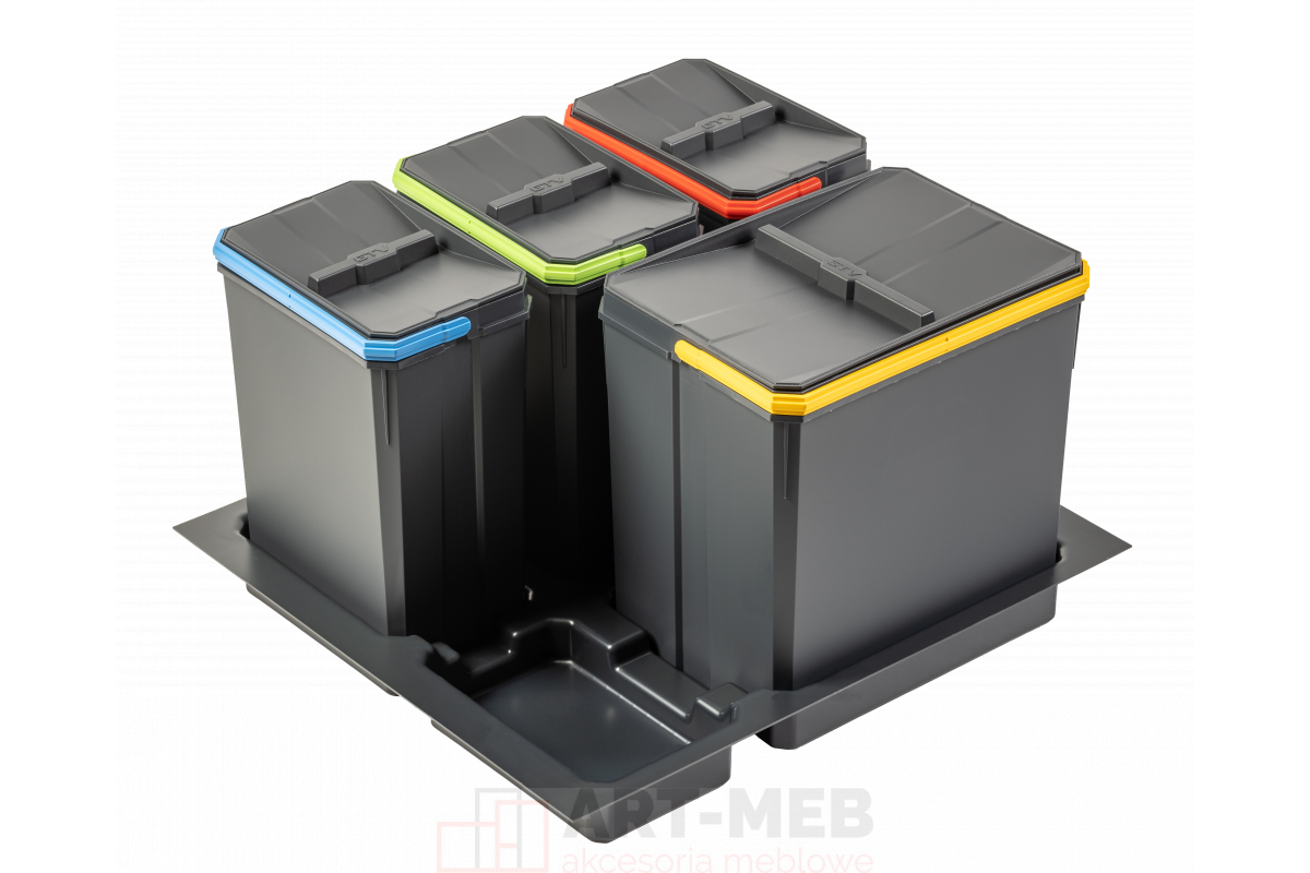 - wyposażony w trzy pojemniki: 1 x 15L + 3 x 7L