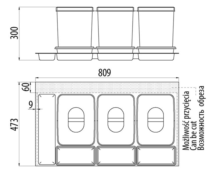 Pojemniki multino 900 3X15L+3 brytfanki ANTRACYT