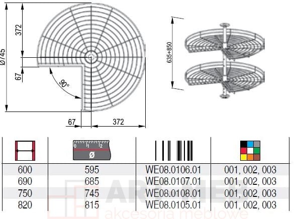 Półka obrotowa NOVA 3/4 750 SREBRNY ALUMINIUM