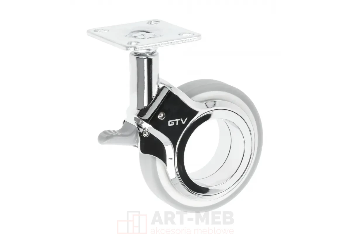 Rolka meblowa GTV GIRA, H=107 mm, fi75 mm, z hamulcem, tworzywo + ZnAl, chrom + szary mat