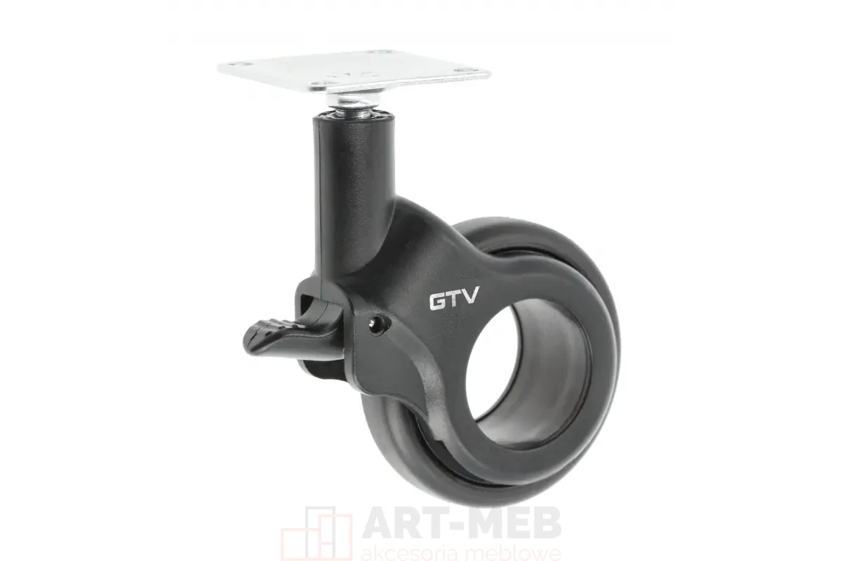 Rolka meblowa GTV STRADA, H=92,5 mm, fi60 mm, z hamulcem, tworzywo + stal, czarny