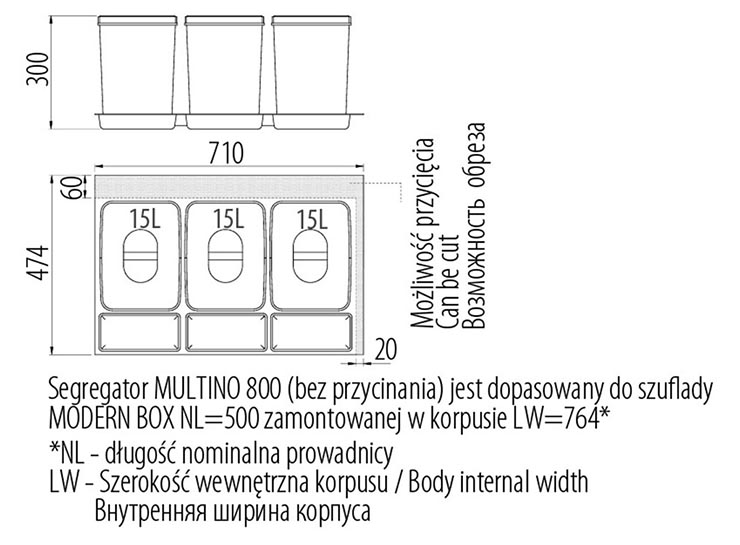 - Do szuflad o długości L= 500 mm oraz L=450 ( po przycięciu)