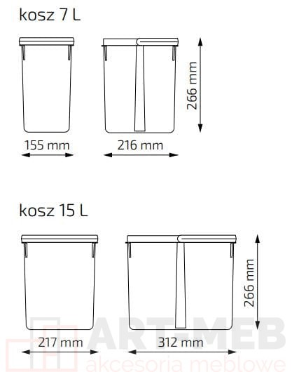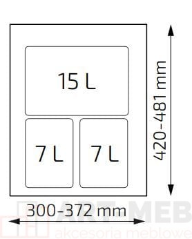 Pojemniki UNICO 45 / 2x7L+1x15L - ANTRACYT