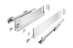 - Precyzyjna regulacja: System pozwala na komfortową regulację frontu szuflady w trzech płaszczyznach (pion, poziom +- 2 mm oraz pochylenie).