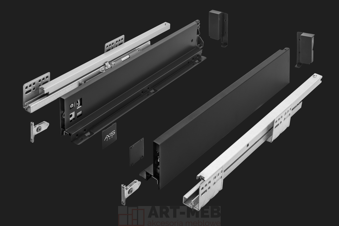 Szuflada Axis Pro GTV Czarny 450 mm Niska (H=86 mm) z miękkim domykiem