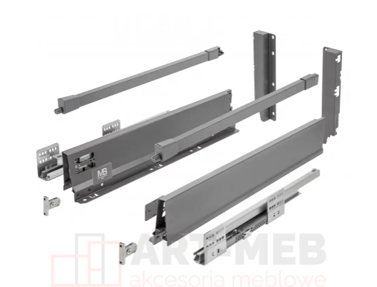 - Mocowania ścianki tylnej (2 szt.): Dedykowane do wysokiej wersji szuflady, gwarantujące stabilność konstrukcji.