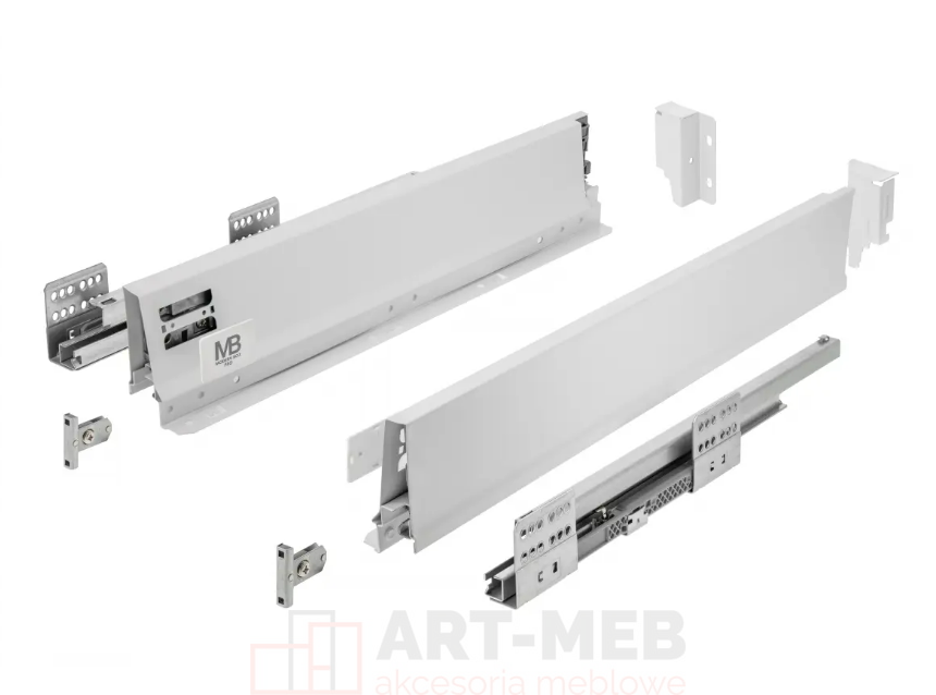 - Mocowania ścianki tylnej (2 szt.): Dedykowane do niskiej wersji szuflady, gwarantujące stabilność konstrukcji.