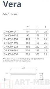 Uchwyt meblowy Vera krawędziowy czarny mat P61- C-4909A-192/222